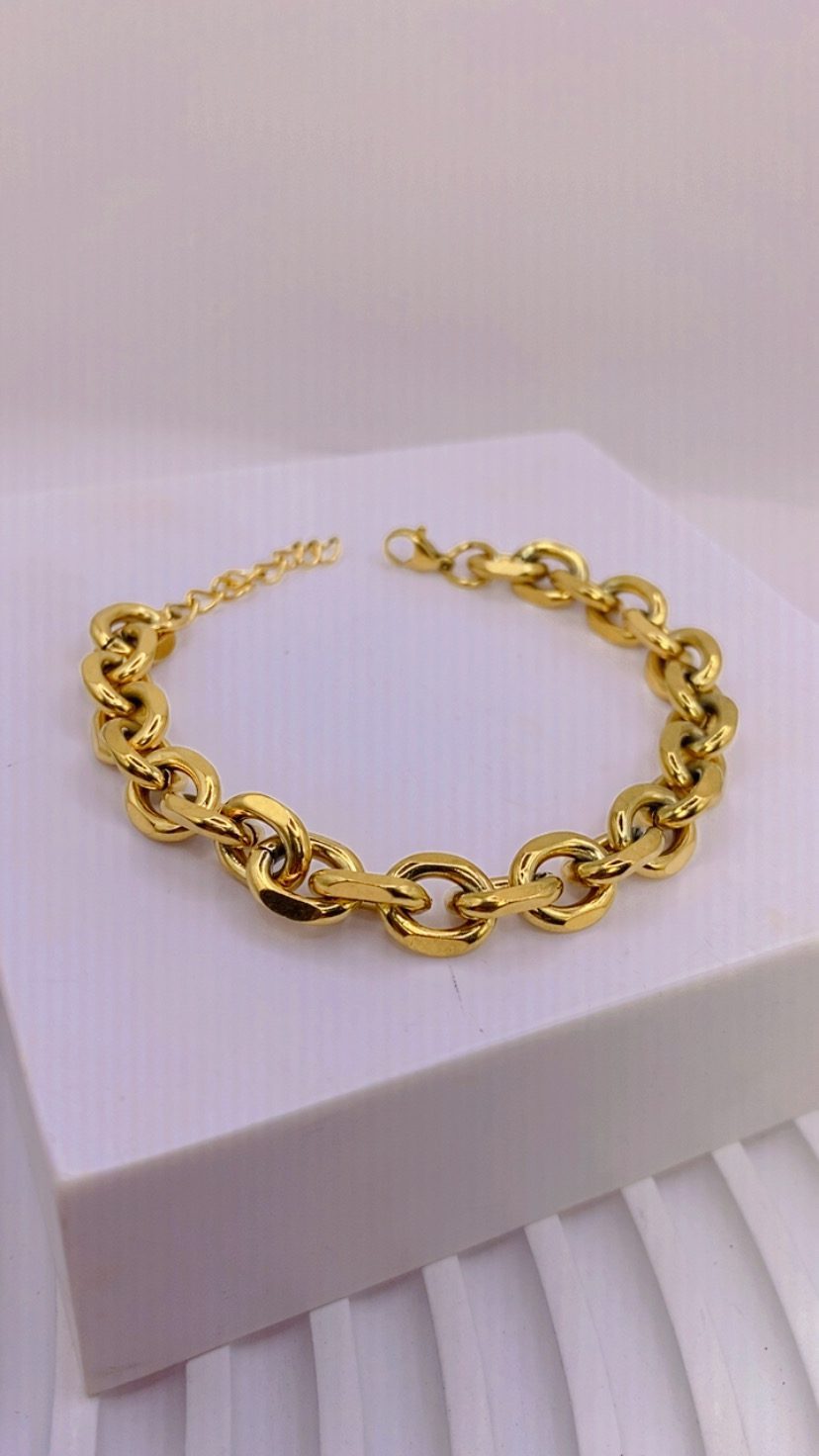 Κομψό βραχιόλι τύπου “gourmet chain” από ανοξείδωτο ατσάλι επιχρυσωμένο 21Κ.