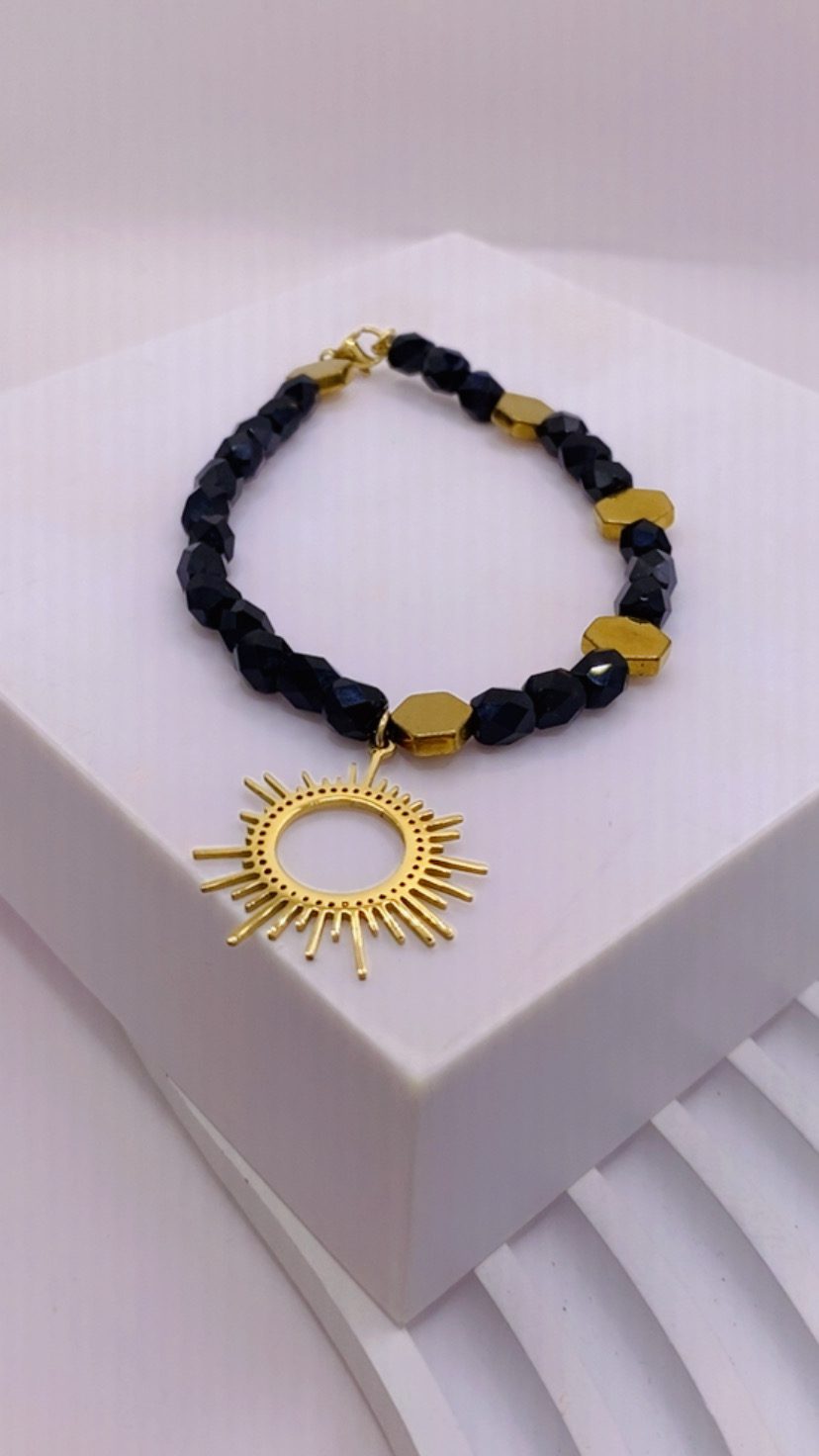 Το “Ηλιαχτίδα” του cristianahandmade συνδυάζει μαύρους κρυστάλλους και χρυσό ήλιο για ένα κομψό, φωτεινό αποτέλεσμα. Λάμψε με κάθε σου κίνηση με το βραχιόλι “Ηλιαχτίδα”.