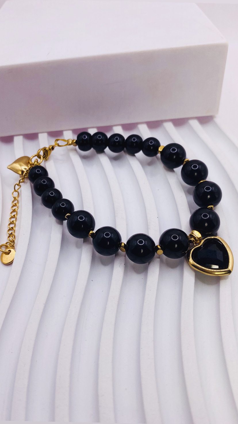 Μαύρος όνυχας και λαμπερή καρδιά με χρυσές λεπτομέρειες… ένα βραχιόλι γεμάτο κομψότητα και δυναμισμό.