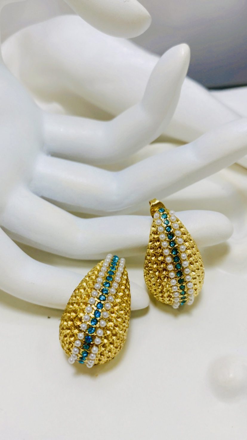 Φαντάσου: Ένα κόσμημα σε σχήμα δάκρυ, γεμάτο με λαμπερά κρυσταλλάκια τιρκουάζ. Αυτά τα μικροσκοπικά πετράδια αιχμαλωτίζουν το φως και το αντανακλούν με έναν εκθαμβωτικό τρόπο, δημιουργώντας μια συνεχή λάμψη που δεν περνά απαρατήρητη. Το τιρκουάζ, με το γαλήνιο μπλε-πράσινο χρώμα του, προσθέτει μια νότα φρεσκάδας και ζωντάνιας.