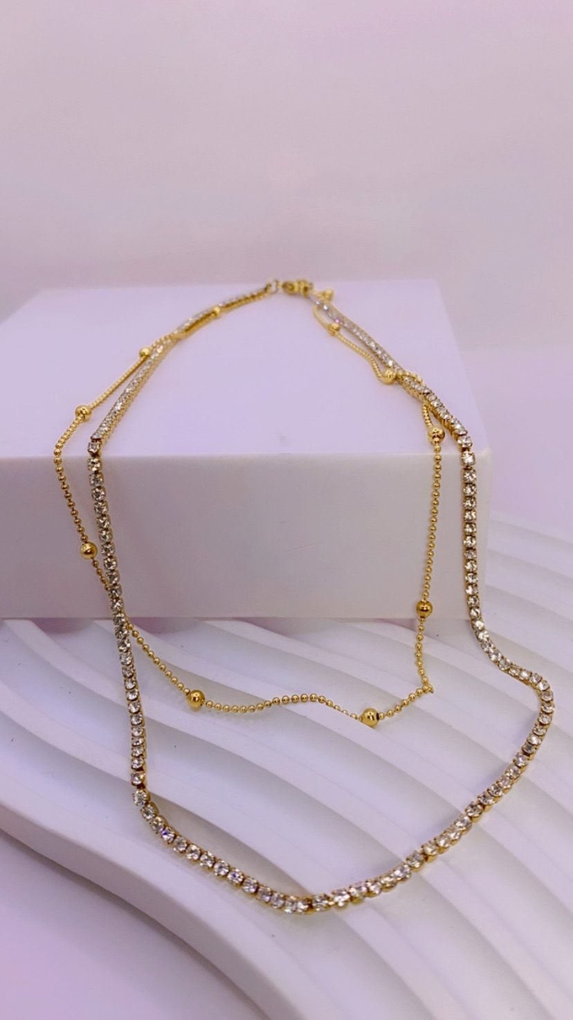 Διπλή σειρά με ζιργκόν εξαιρετικής ποιότητας και ενσωματωμένη αλυσίδα με μπιλάκια, που δημιουργεί ένα φυσικό layering minimal glamour & chic.