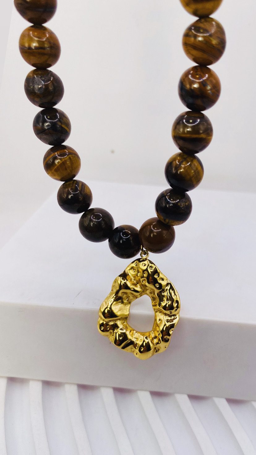 Ιδανικό για κάθε στιγμή που θέλεις να ξεχωρίσεις. Εντυπωσιακό κολιέ με ημιπολύτιμες πέτρες μάτι τίγρη, που αντανακλούν φυσικά φως και ενέργεια.