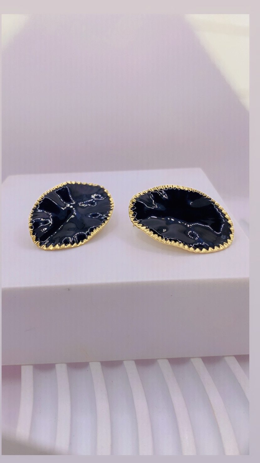 Μαύρο σμάλτο, χρυσές λεπτομέρειες και απόλυτη κομψότητα σε κάθε εμφάνιση. Εντυπωσιακά σκουλαρίκια με μαύρο σμάλτο και χρυσό περίγραμμα, που αποπνέουν διαχρονική κομψότητα και έντονο χαρακτήρα.