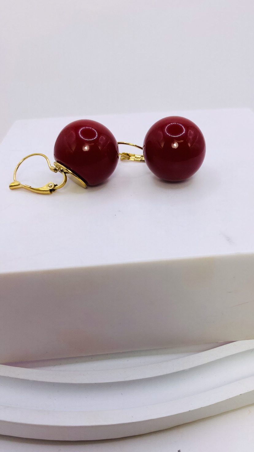 Minimal και κομψά σκουλαρίκια με μπίλια σε βαθύ μπορντό χρώμα, που προσθέτουν διακριτική λάμψη και στυλ σε κάθε εμφάνιση.