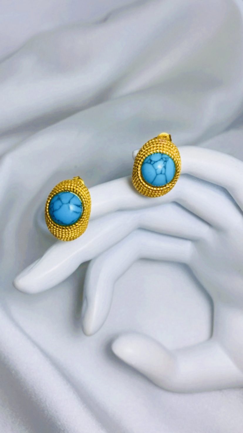 Και φυσικά, η ποιότητα είναι αδιαπραγμάτευτη. Τα σκουλαρίκια είναι κατασκευασμένα από υποαλλεργικό ατσάλι, που σημαίνει πως είναι ιδανικά ακόμα και για τα πιο ευαίσθητα αφτιά, χωρίς να προκαλούν ερεθισμούς. Επιπλέον, είναι ντουμπλαρισμένα, μια ειδική επεξεργασία που τους προσδίδει ακόμα μεγαλύτερη αντοχή και διάρκεια στη λάμψη. Και το κερασάκι στην τούρτα: είναι επιχρυσωμένα με 21 καράτια! Ναι, 21Κ χρυσός, που χαρίζει αυτή την πλούσια, ζεστή χροιά και αναδεικνύει ακόμα περισσότερο την ομορφιά του τιρκουάζ και του ανάγλυφου σχεδιασμού.