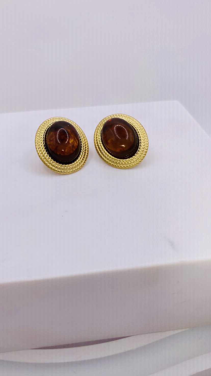 ✨ Golden Amber ✨ Η ζεστασιά του κεχριμπαριού συναντά τη λάμψη του χρυσού σε ένα ζευγάρι σκουλαρίκια που αποπνέει διαχρονική κομψότητα. Κομψά σκουλαρίκια με καφέ ταρταρούγα πέτρα και χρυσό ανάγλυφο πλαίσιο, που συνδυάζουν τη ζεστασιά του κεχριμπαριού με τη διαχρονική λάμψη του χρυσού. Από ανοξείδωτο ατσάλι εξαιρετικής ποιότητας, ιδανικά για κάθε περίσταση.