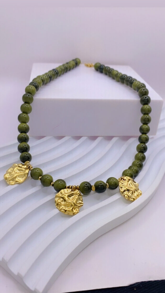 Το Khaki Wrinkled Choker με μαρμάρινο χαολίτη και σφυρήλατα στοιχεία αποπνέει δυναμισμό και αυθεντικότητα 💚