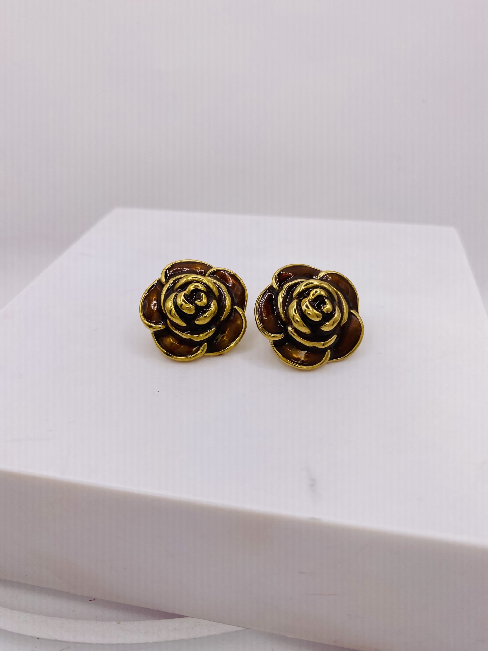 Με σχήμα τριαντάφυλλου σε γήινες αποχρώσεις ταρταρούγας και χρυσές λεπτομέρειες, χαρίζουν κομψότητα σε κάθε look — από το καθημερινό ως το βραδινό.