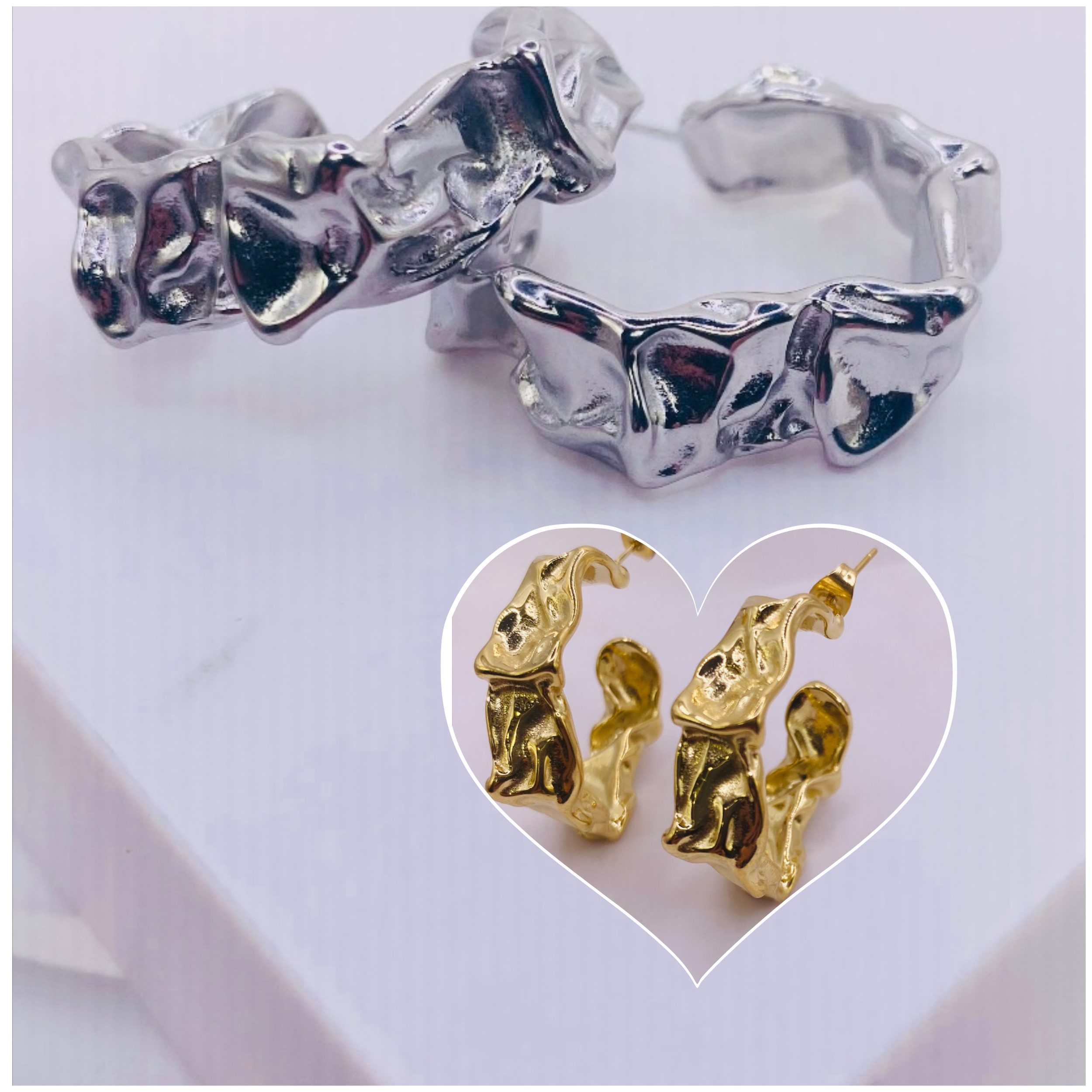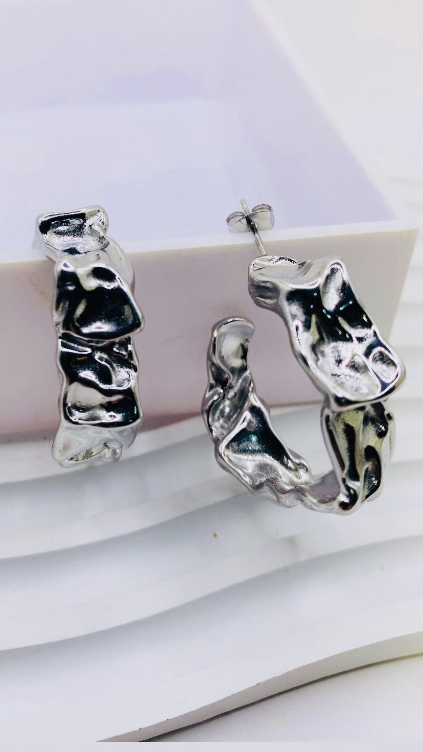 Φόρεσέ τα σε χρυσό ή ασημί και κάνε τη διαφορά — effortless & elegant ✨ Μοντέρνα και τολμηρά, τα Wrinkled Earrings εντυπωσιάζουν με τη μοναδική τους επιφάνεια “τσαλακωμένου” μετάλλου.